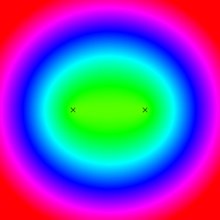 Interesting patterns can be made by choosing the colour for each point by some rule.
