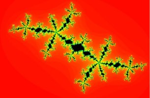 This set has C = (-0.54, 0.6) which is in part of the Mandelbrot that has a